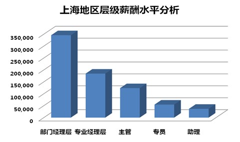 根据众达朴信薪酬调研数据显示,2011年上海地区部门经理层年度总现金中位值为345680元,薪酬涨幅为12.6%;日韩资企业该层级员工年薪中位值为445332元,欧美独资企业最高,为485235元;专业经理层与主管层年薪中位值分别为184532元和123585元,涨薪幅度均超过12%,主管层年薪内外资薪酬差距较大;专员层年薪中位值为54503元,毕业生起薪的上涨,带动了该层级薪酬水平的上升;助理操作层年薪中位值为36853元,月薪超过3000元。