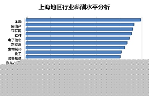 内外资银行和金融机构的入驻,使得上海成为国际金融中心的同时,也提升了金融行业整体的薪酬水平,平均年薪已经超过30万。以上海地区金融行业薪酬水平为基数,互联网、软件、电子信息等高新技术行业薪酬涨幅较快,薪酬系数分别为0.93、0.92和0.9,缩小了与房地产行业的薪酬差距;此外,新能源、生物制药和化工是未来上海地区加大投资力度的行业,发展趋势良好,薪酬系数分别为0.88、0.86和0.83;作为上海地区支柱产业的装备制造和汽车行业薪酬系数分别为0.82和0.8; 零售百货和餐饮薪酬水平较低,薪酬系数为0.7和0.68。