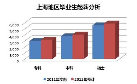 毕业生是地区和企业人才储备的重点对象,与其薪酬水平一样,上海地区的毕业生起薪领跑全国,根据众达朴信毕业生监控数据显示,2011年上海地区本科毕业生起薪为3750元,预计2012年本科毕业生整体起薪将突破4000元;2011年硕士毕业生的起薪为5560元,预计2012年将达到5850元,技术研发岗位将达到6500元。