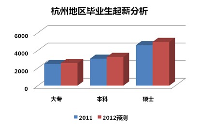 杭州地区对人才的吸引力不仅有其风景如画的湖光山色,其薪酬水平也是其中重要的因素,这一点也体现在毕业生起薪上。根据众达朴信毕业生起薪监控数据显示,2011年杭州地区本科和硕士毕业生起薪中位值分别为3050元和3250元,在二线城市中属于前列,预计2012年硕士毕业生起薪将接近5000元。