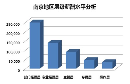 根据薪酬调研数据显示,南京地区部门经理层年度总现金中位值为248560元,涨薪幅度为11.5%;专业经理层和主管层涨薪幅度均超过12%,年薪中位值分别为138456元和89565元;随着毕业生起薪的上涨,专员层与操作层薪酬涨幅较快,年薪中位值分别为45878元和34862元,但与上海地区的54503元和36853元仍有不小的差距。
