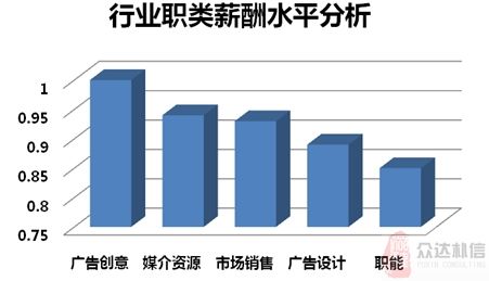 近年来,广告行业进入了快速发展期,行业整体薪酬水平也有所增长。根据众达朴信薪酬调研数据显示,2011年广告行业部门经理层年薪中位值为353568元,一线城市广告创意和媒介部门经理年薪中位值超过50万;专业经理层年薪中位值超过18万,薪酬涨幅在12%以上;主管和专员年薪中位值分别为68356元和46353元,毕业生起薪的增长使得这两个层级的薪酬水平也在水涨船高。