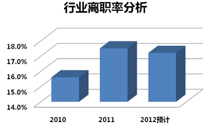 与其他加工制造业一样,家具行业的离职率也很高。根据众达朴信调研数据显示,2011年行业离职率中位值达到17.5%,超过2010年的15.6%近2个百分点,可见未来几年用工形势依然严峻。离职率高的岗位主要集中在生产序列工作2年以下的普工和初级技工。此外,销售和设计人员也是行业重点稀缺人员,离职率也一直在15%以上。预计2012年行业离职率仍然会超过17%,随着行业集中度和产业集群的扩大,未来行业离职率将会有所缩小。