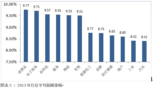但是,科锐国际专家也强调,较之2012年10%的薪酬涨幅,消费品行业2013年的涨幅略有下降,所以,它的领跑仅仅是其他行业降低了加薪幅度而已。