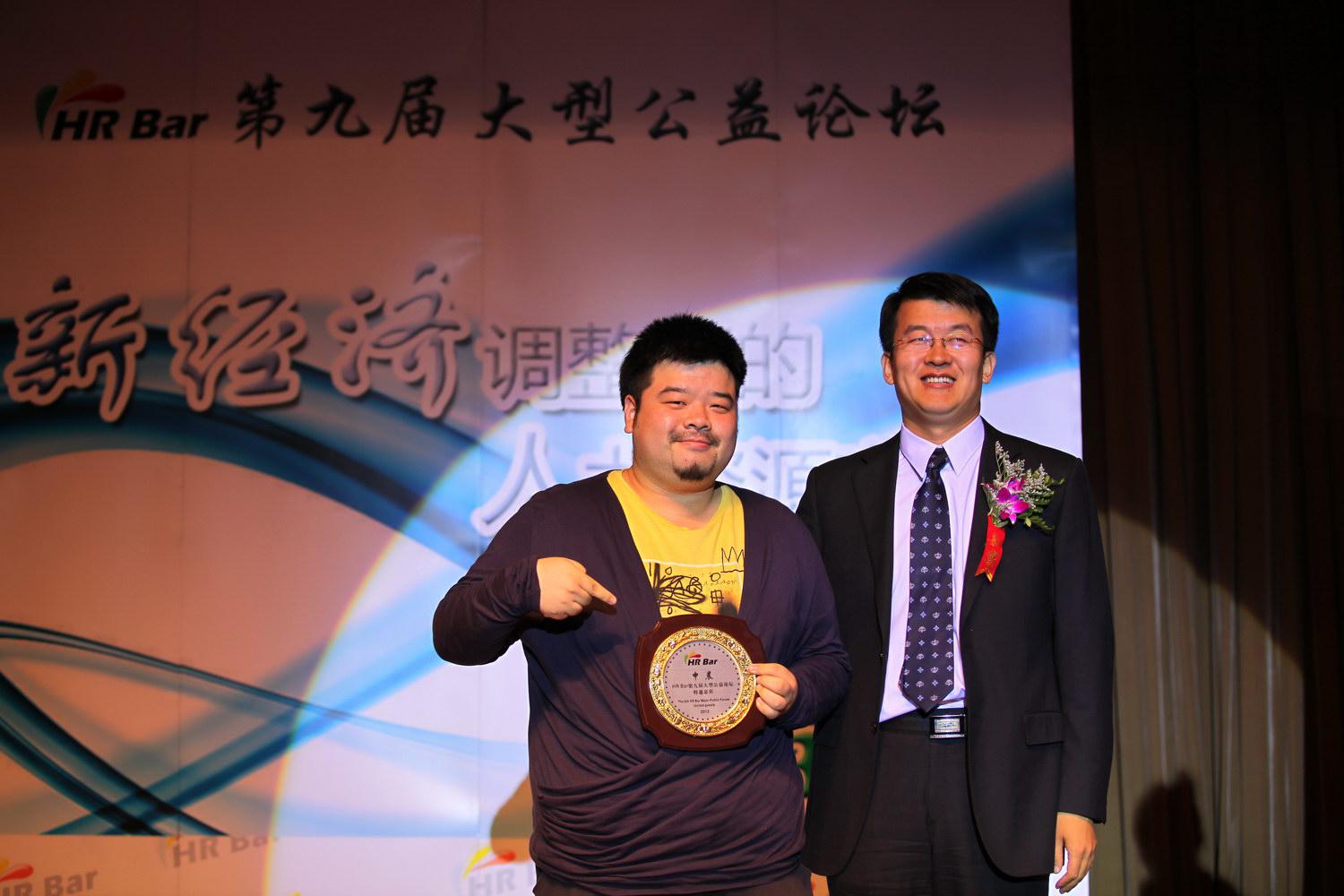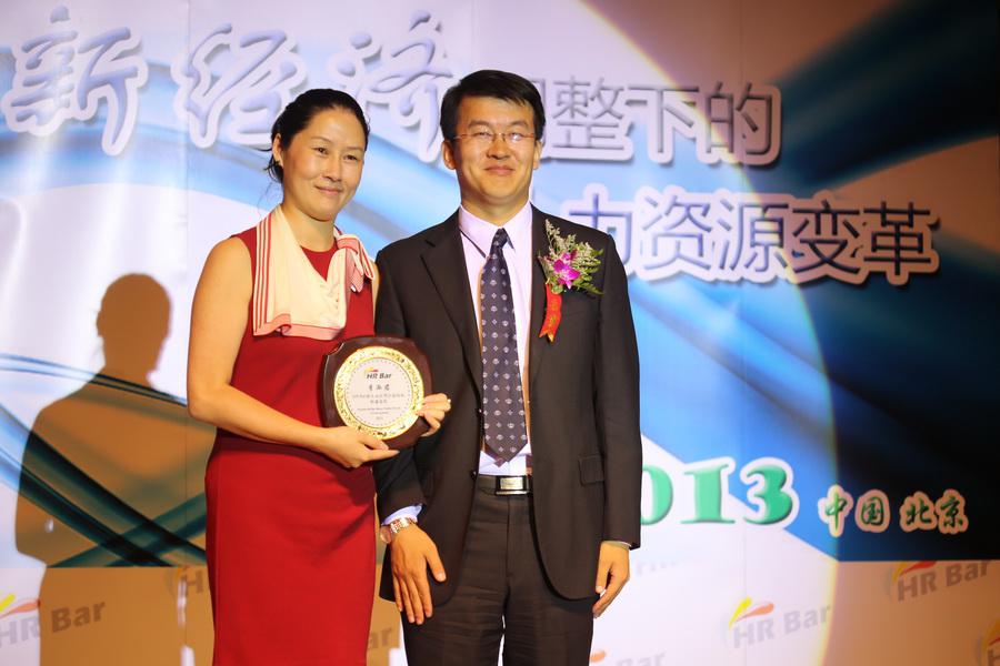 刘建华先生为新浪微博高级人力资源经理申晨先生颁发证书