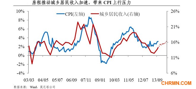 由此莫尼塔预计,到2014年,很可能会出现由于房租上涨过快反过来倒逼企业提高工资,进而推高整体的通胀水平,继续制约货币政策空间。