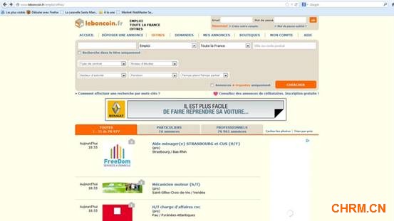 从此,Leboncoin.fr的就业信息模块便不再被冠以“仅针对家庭员工职位岗位(奶妈、保姆等)信息”这样的头衔了。现如今已有超过2万个企业使用Leboncoin.fr网站进行招聘信息的发布,当然其中的大多数还是属于特小型及中小型企业范畴内的。