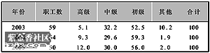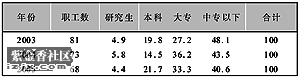 4.1学历结构改善 见表3。近3年来,中专以下学历明显减少,大专、本科学历明显增加,研究生学历略有下降。