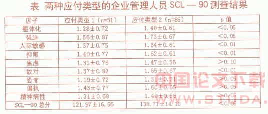 表 两种应付类型的企业管理人员SCL—90测查结果