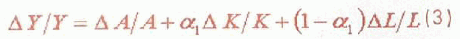 利用增长速度方程(即索洛函数)进行因素分析,上式可一部转化为: